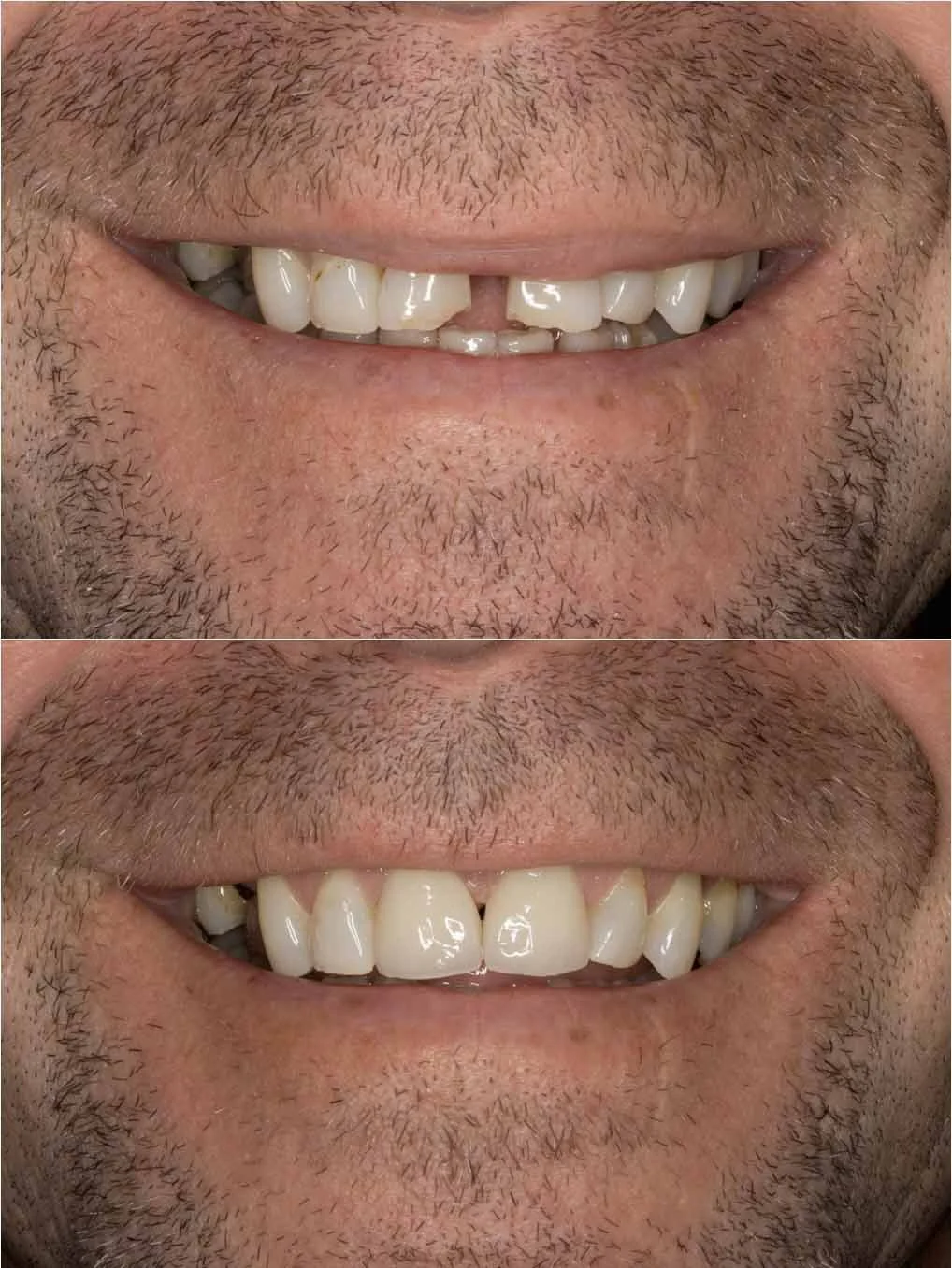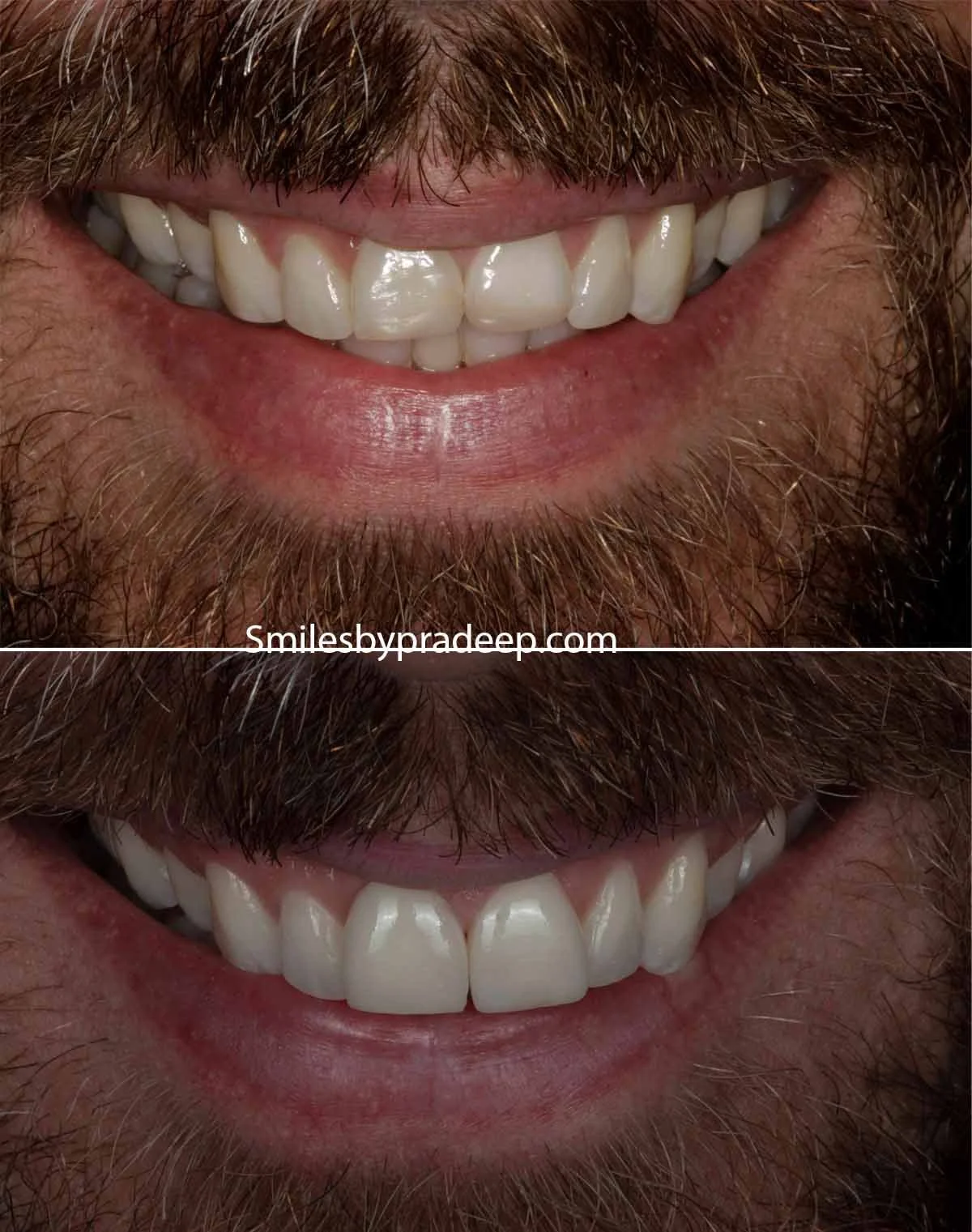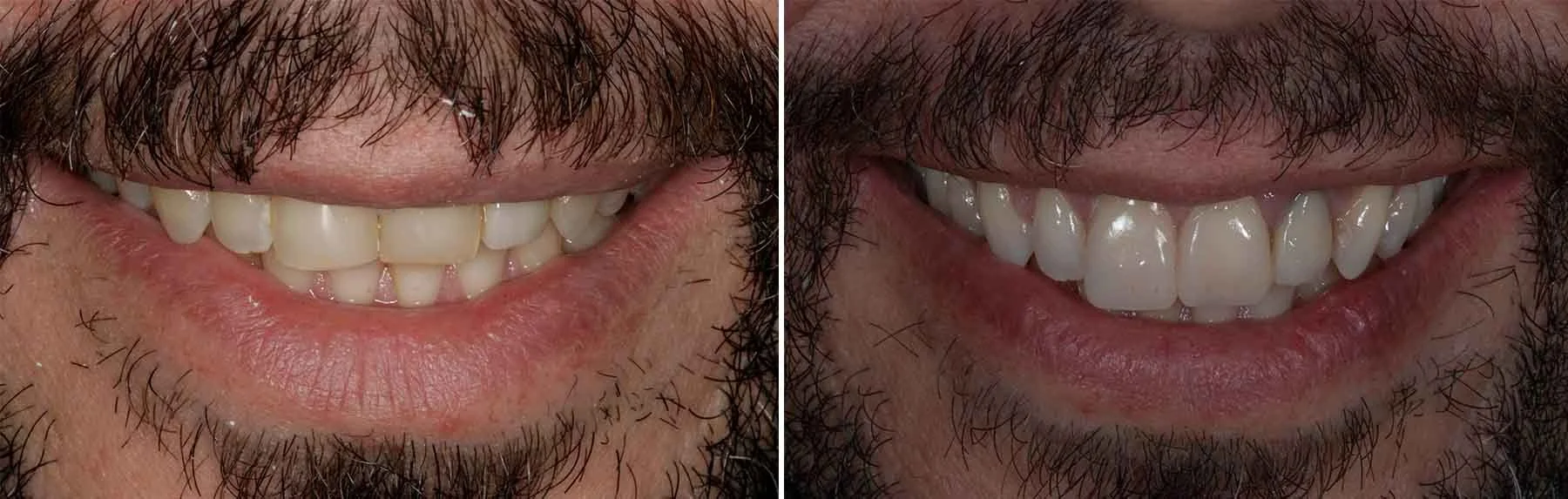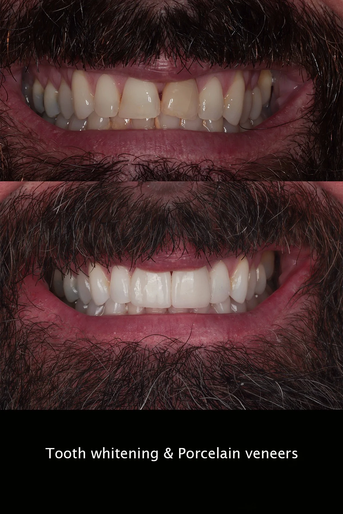 This patient expressed a desire to improve his smile. He didn’t want orthodontics. Simple tooth whitening and porcelain veneers were able to deliver the result he was looking for.