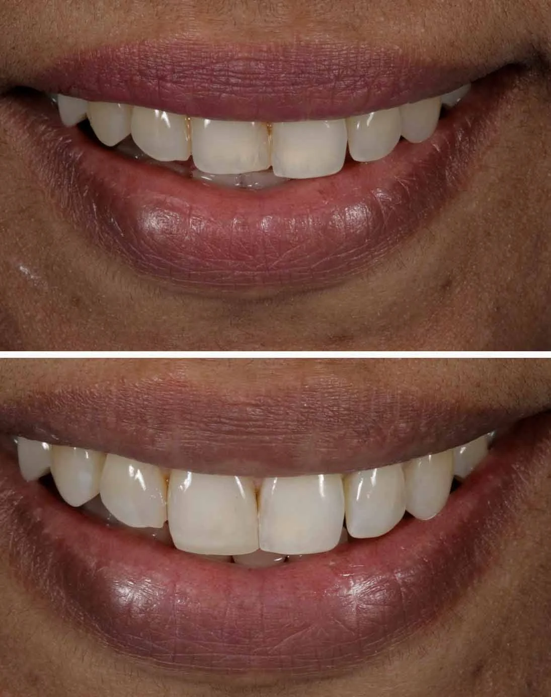 This young lady presented with a gap between her teeth. After discussing various options, she elected to have composite bonding to close the gaps. AS can be seen, after composite bonding, all the gaps were closed, leaving the patient to be able to smile confidently.